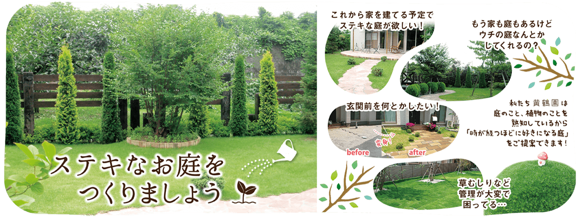 エクステリア・外構のデザインや施工から、剪定・消毒などのメンテナンスまでどんな事でもご相談ください!