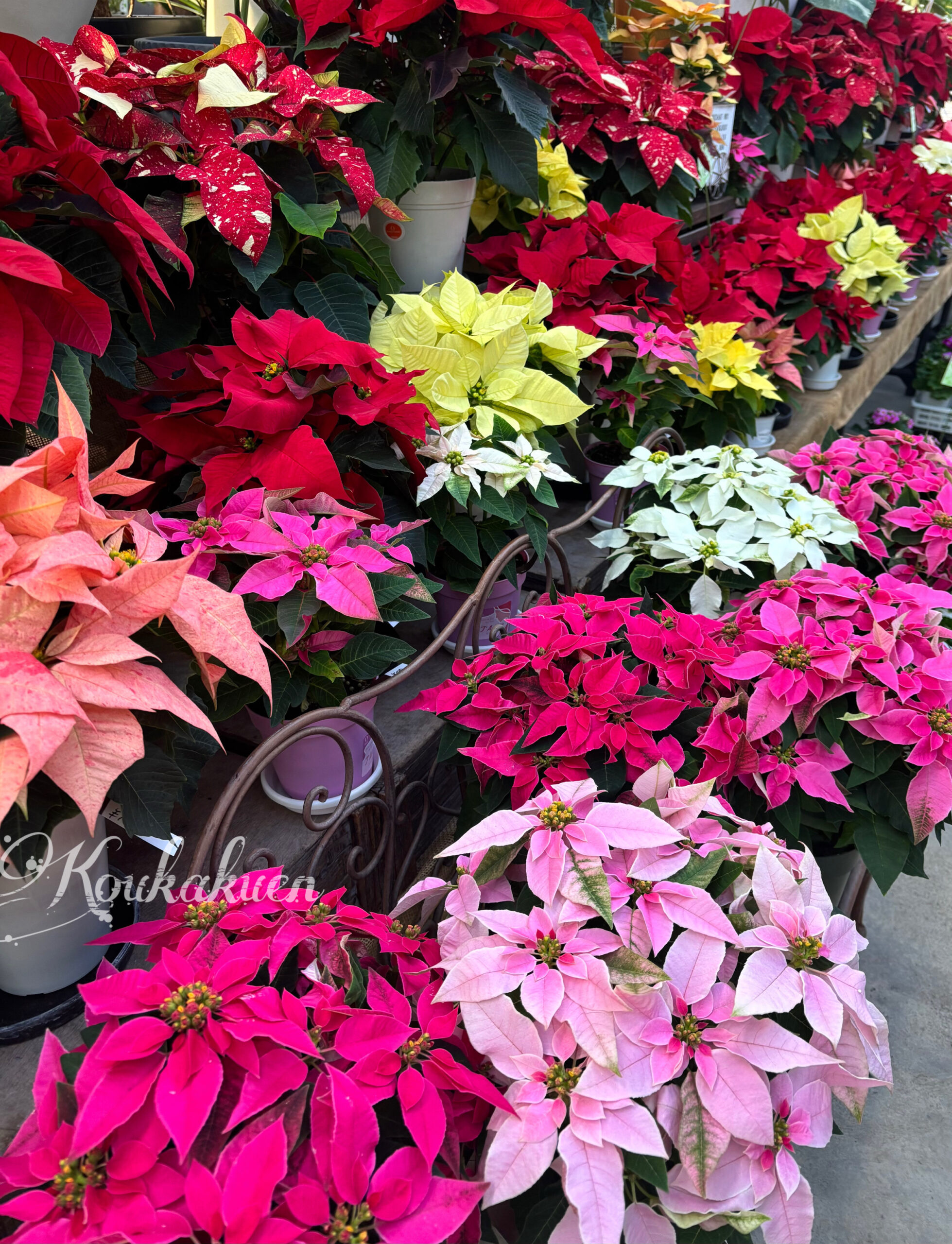 ポインセチア♡ 11月も半ばになり、いよいよ冬も目の前ですね!だんだんとクリスマスも近づいてきています♪ そこでおすすめなのがポインセチア!続々と入荷しています。赤に黄色にピンクに…どれも可愛くて悩みます♡ かごもりにしてみたり、サンタさんと一緒に置いてみたり♡もちろん、そのまま飾ってもOK!お部屋のワンポイントにいかがですか?♪クリスマスが待ち遠しいです♡