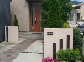 玄関ドアを隠す目隠しと花壇/下伊那郡S様邸
