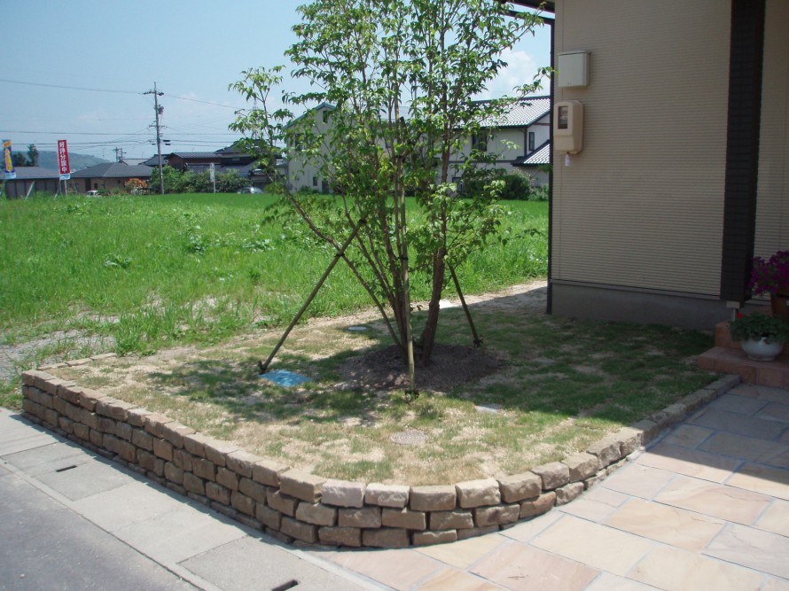 立体感を出した玄関前のスペース/飯田市 | 長野県飯田市の庭、外構、エクステリアは黄鶴園(こうかくえん)にお任せください!