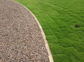 和モダンな木目調アルミ目隠し/愛知県 和モダンな木目調アルミフェンスを使用した目隠しのご紹介です。完全に隠すのではなくて、植物の間から見えるフェンスがとてもオシャレです。隙間の間隔を広めることで圧迫感はなくなります。/飯田市庭