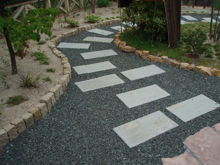 板石のステップとカラー砂利で雑草対策/飯田市 | 長野県飯田市の庭、外構、エクステリアは黄鶴園(こうかくえん)にお任せください!